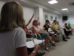 a los vecinos y representantes de organizaciones vecinales debatiendo