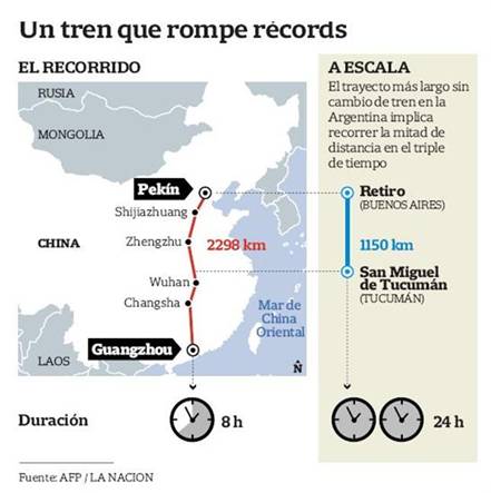 Tren desde Pekín hasta la ciudad de Guangzhou a 2298 Km. de distancia