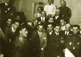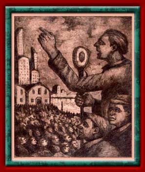 banderas y panfletos adornaban el paisaje mientras la muchedumbre