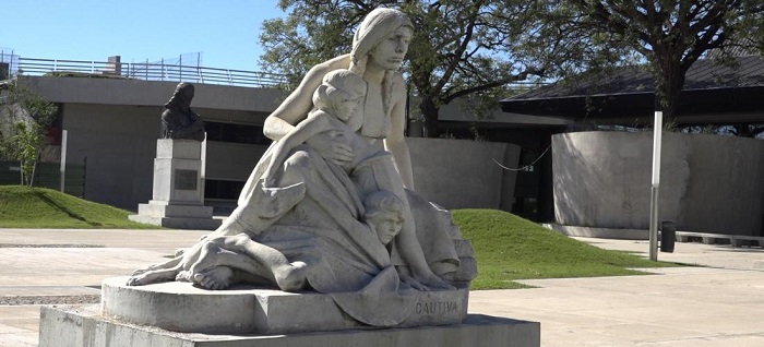 En cuanto a la obra LA CAUTIVA, su estudio, su preocupación por los aborígenes lo lleva a conocer a aquella mujer arrancada luego de la masacre de la última conquista al desierto y que fuera confinada, arrancada de sus hijos y familia, a una estancia oligárquica, a servir hasta su muerte. Su tristeza, su rostro, su penar quedan reflejadas en la escultura ubicada en avenidas Pueyrredón y la avenida Amancio Alcorta.