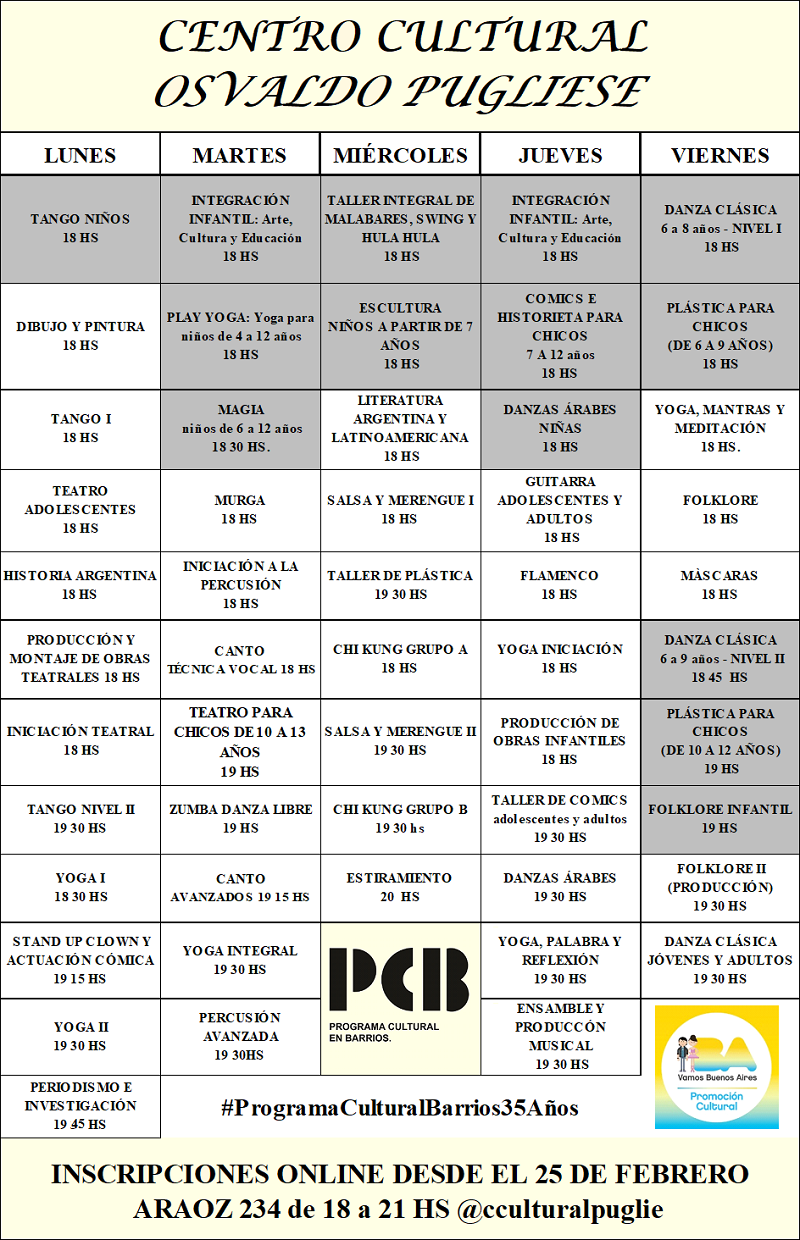 de arte, canto y pintura, en el Centro Cultural Devoto-Villa