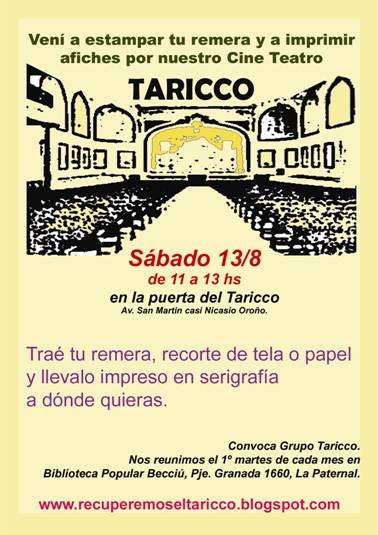 EL CINE TEATRO TARICCO, TAMBIÉN QUE IMPRIMAN AFICHES