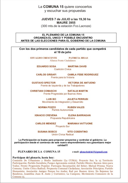 DE LOS CANDIDATOS COMUNALES DE LA 15