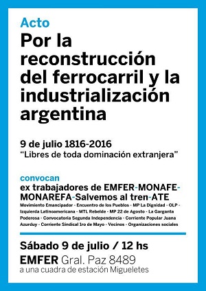 9 DE JULIO A LAS 12 HORAS en los ex talleres ferroviarios