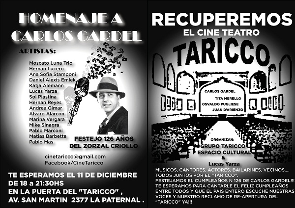 de Carlos Gardel quien en el año 1928 cantara en la sala Taricco